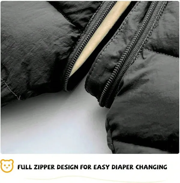 adorable puffer jumpsuit is designed to protect your baby from the cold