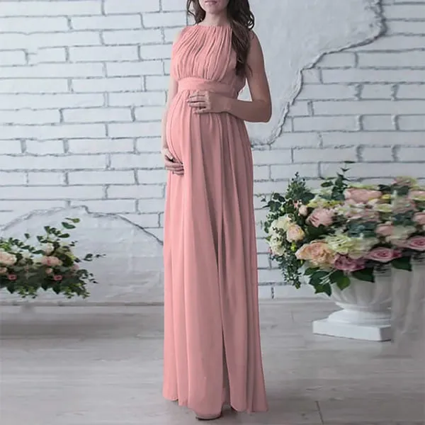 a knitted finish, this gown drapes beautifully over your baby bump. The pleated