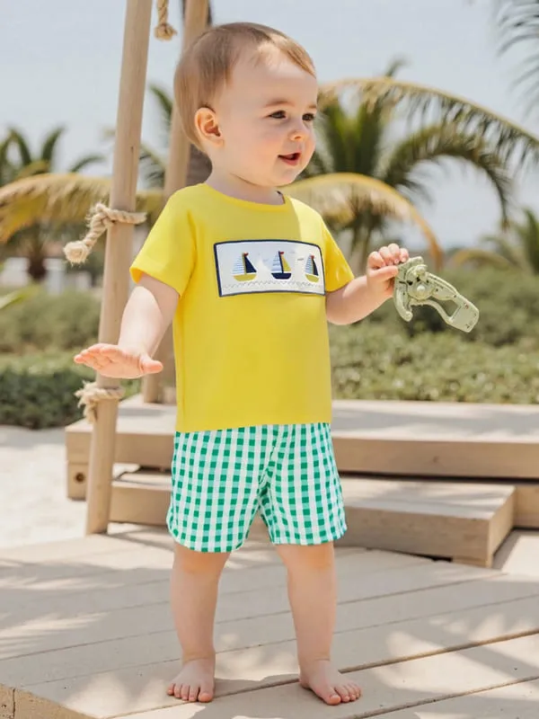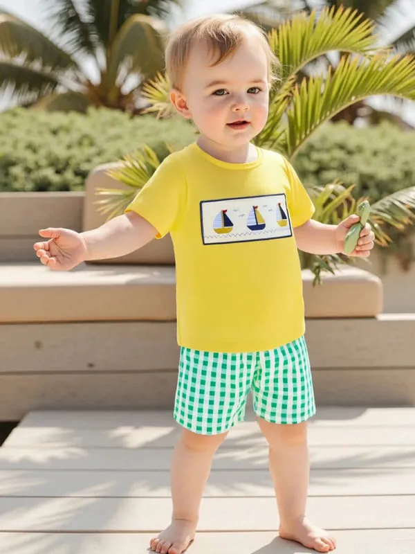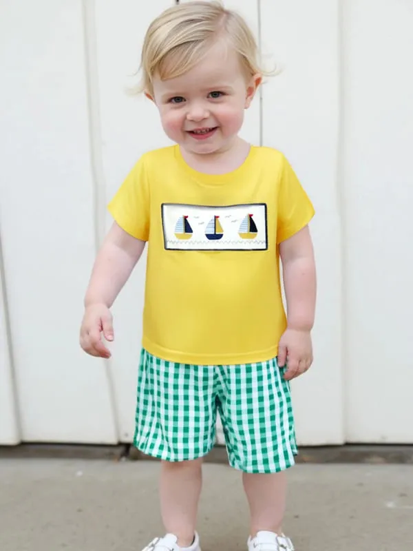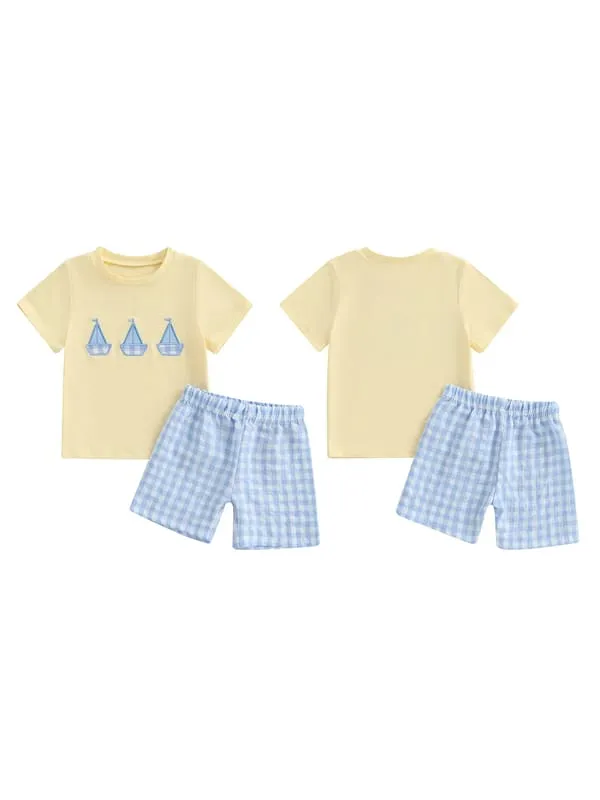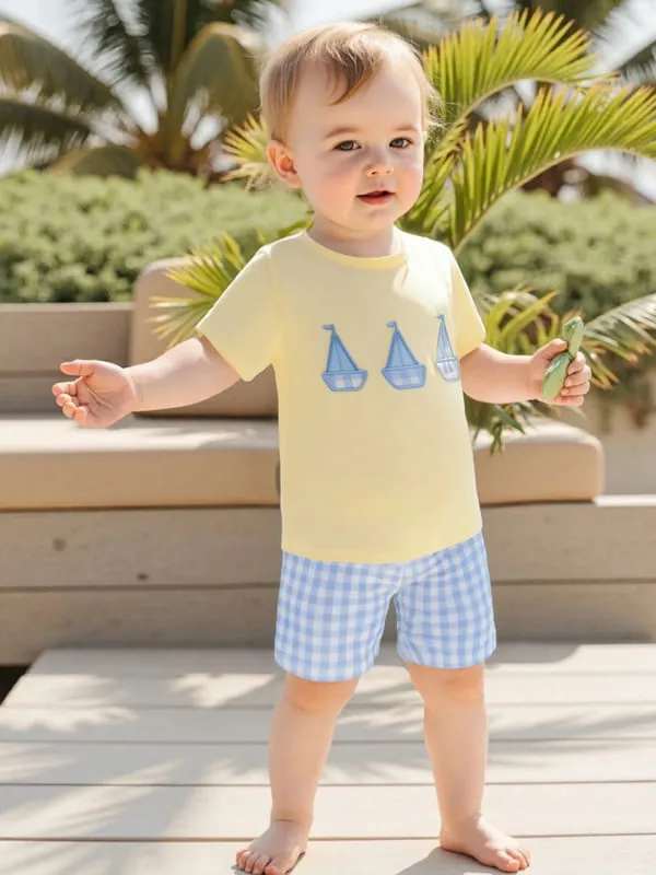 Little Captain Nautical 2-Piece Set features an adorable boat embroidery tee