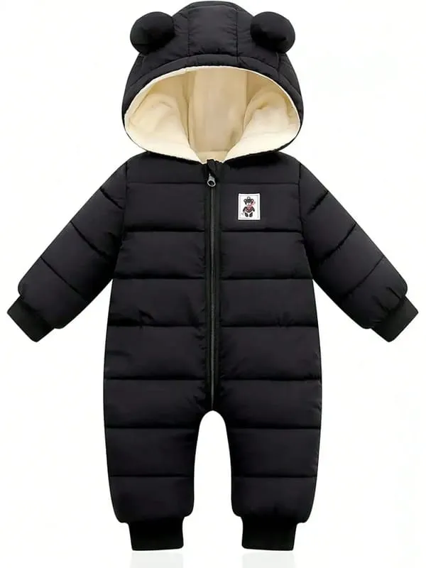 adorable puffer jumpsuit is designed to protect your baby from the cold