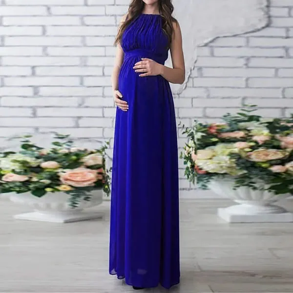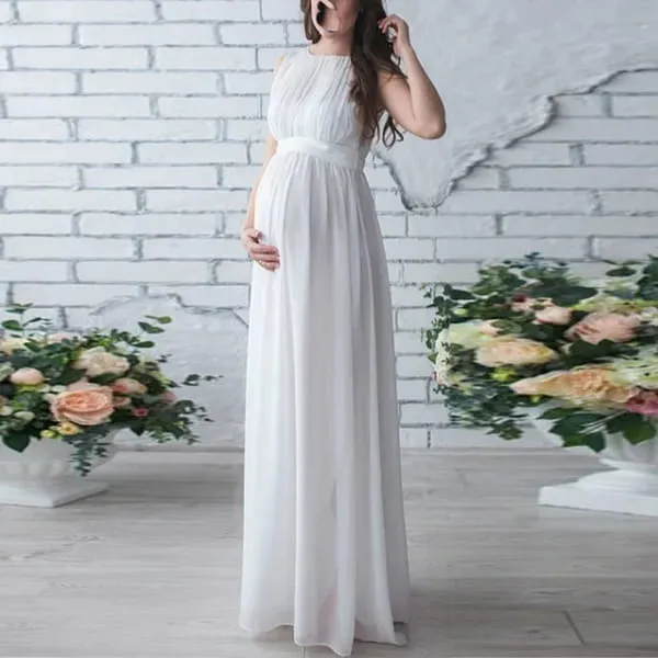 a knitted finish, this gown drapes beautifully over your baby bump. The pleated