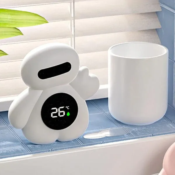 readings of your baby's bath water. The clear LED display shows the current